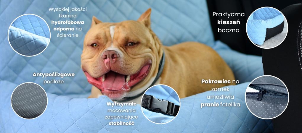 Twój wyjątkowy fotelik z łatwością dopasujesz kolorystycznie do szelek guard, a używając dodatkowo pasów bezpieczeństwa zapobiegniesz przemieszczaniu się psiaka podczas jazdy. Fotelik samochodowy dla psa będzie piękną ozdobą Twojego samochodu, a dodatkowo chroni fotel i oparcie przed zabrudzeniem i sierścią.