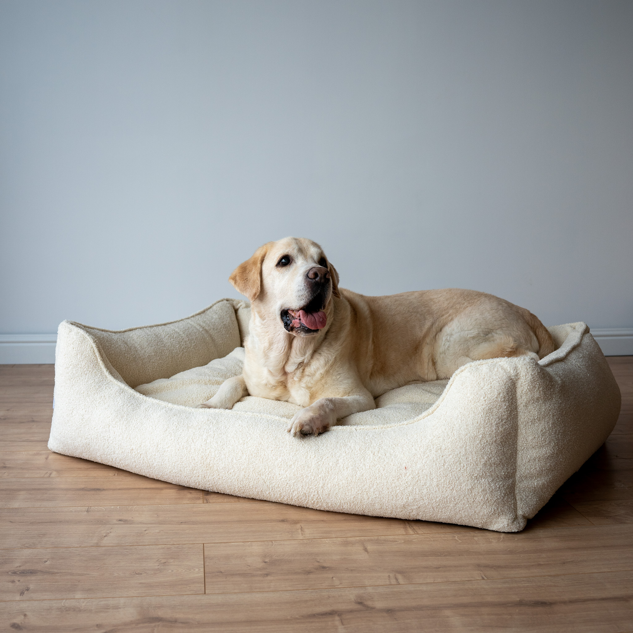 Nowy model legowiska uszyty jest z wyjątkowej tkaniny o nazwie boucle (bukla). Jest to typ tkaniny wykonanej z przędzy pętelkowej, która obecnie zyskała ogromną popularność zdobiąc nowoczesne domy i mieszkania. Bukla jest gęstą i miękką tkaniną, która pięknie uzupełnia przytulny wygląd legowiska.