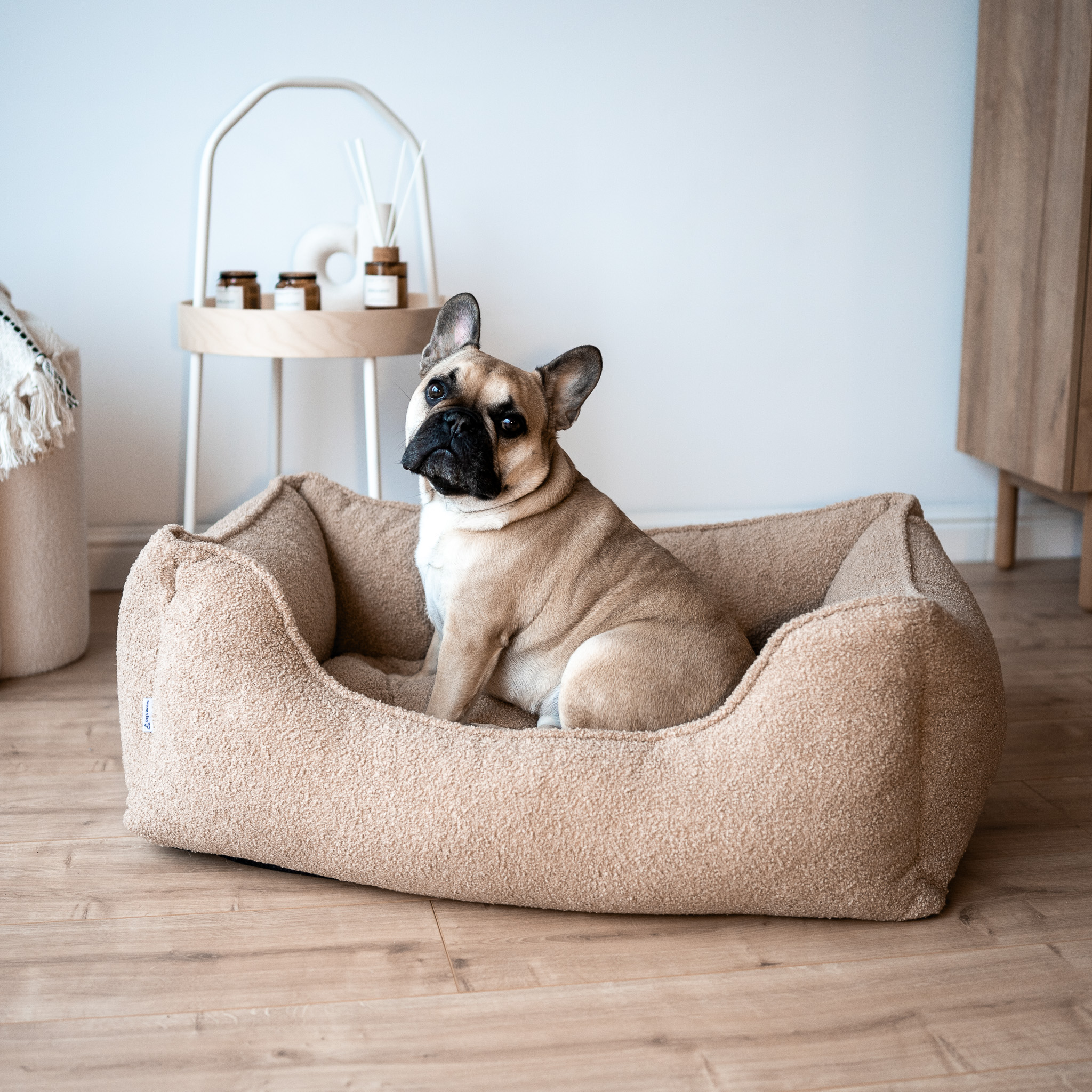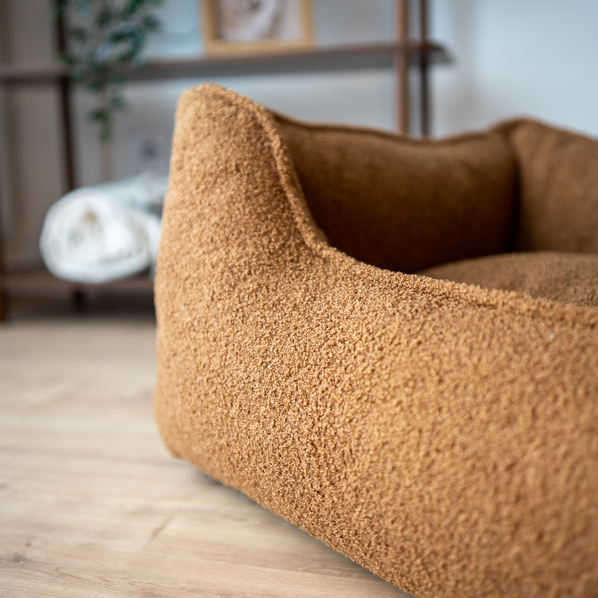 Nowy model legowiska uszyty jest z wyjątkowej tkaniny o nazwie boucle (bukla). Jest to typ tkaniny wykonanej z przędzy pętelkowej, która obecnie zyskała ogromną popularność zdobiąc nowoczesne domy i mieszkania. Bukla jest gęstą i miękką tkaniną, która pięknie uzupełnia przytulny wygląd legowiska.