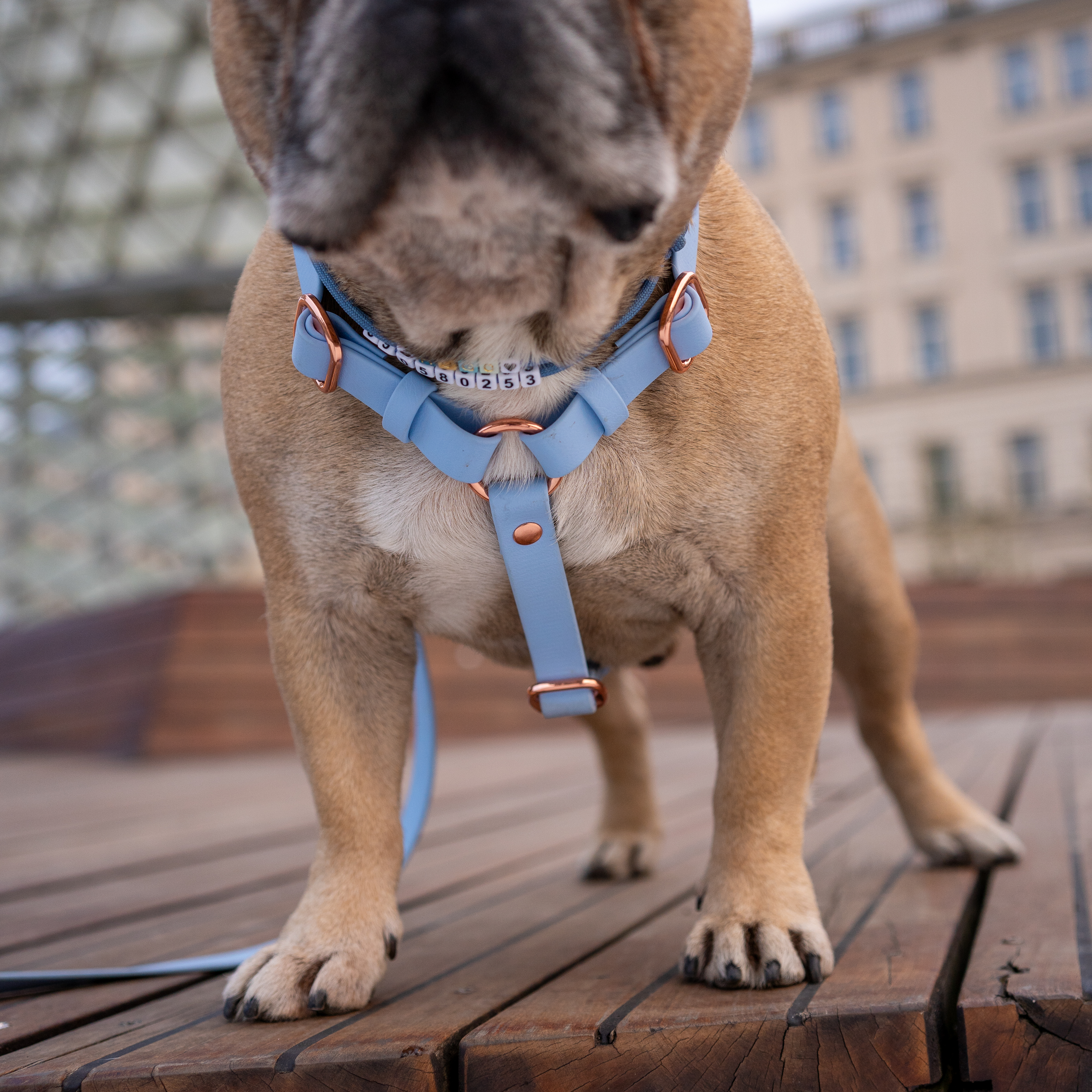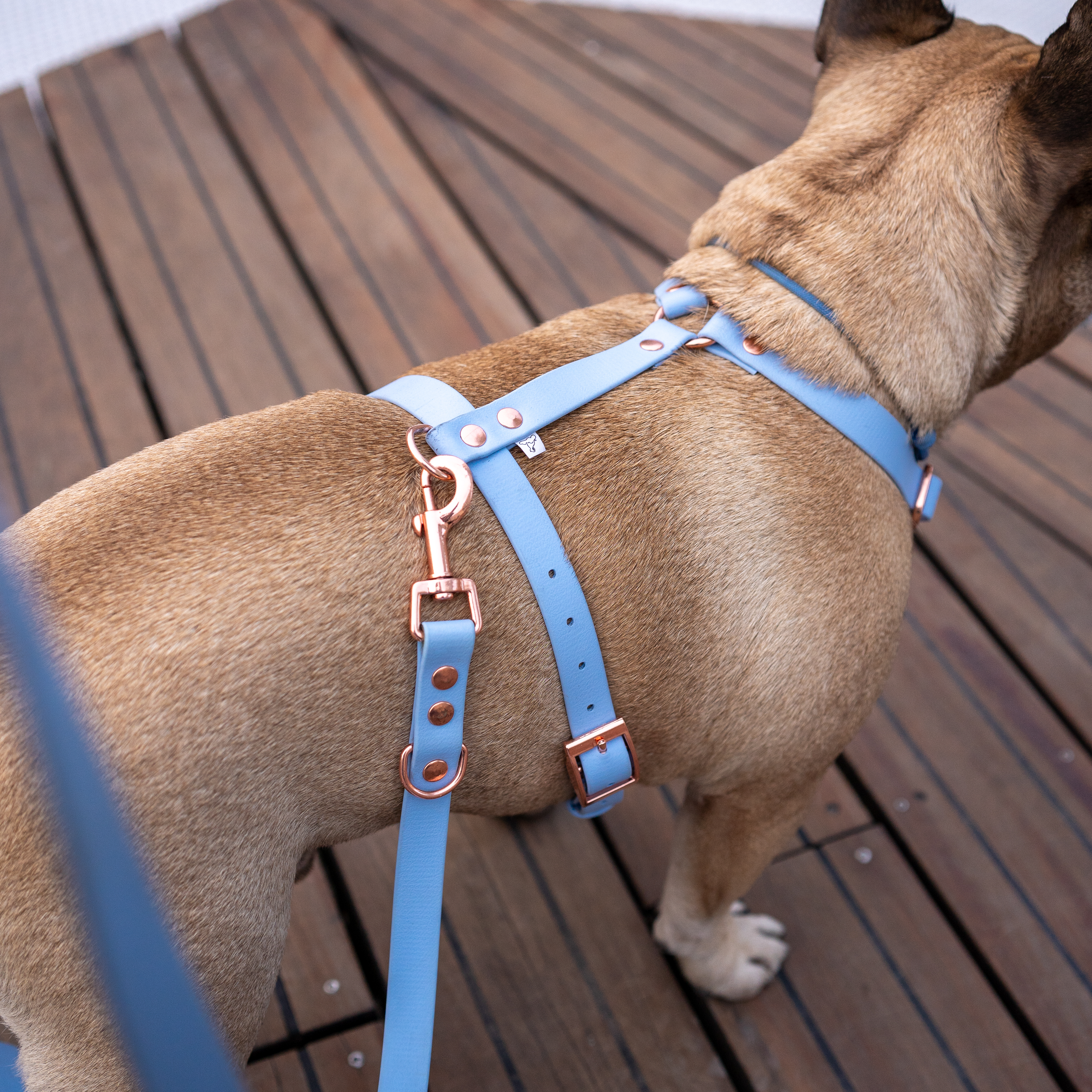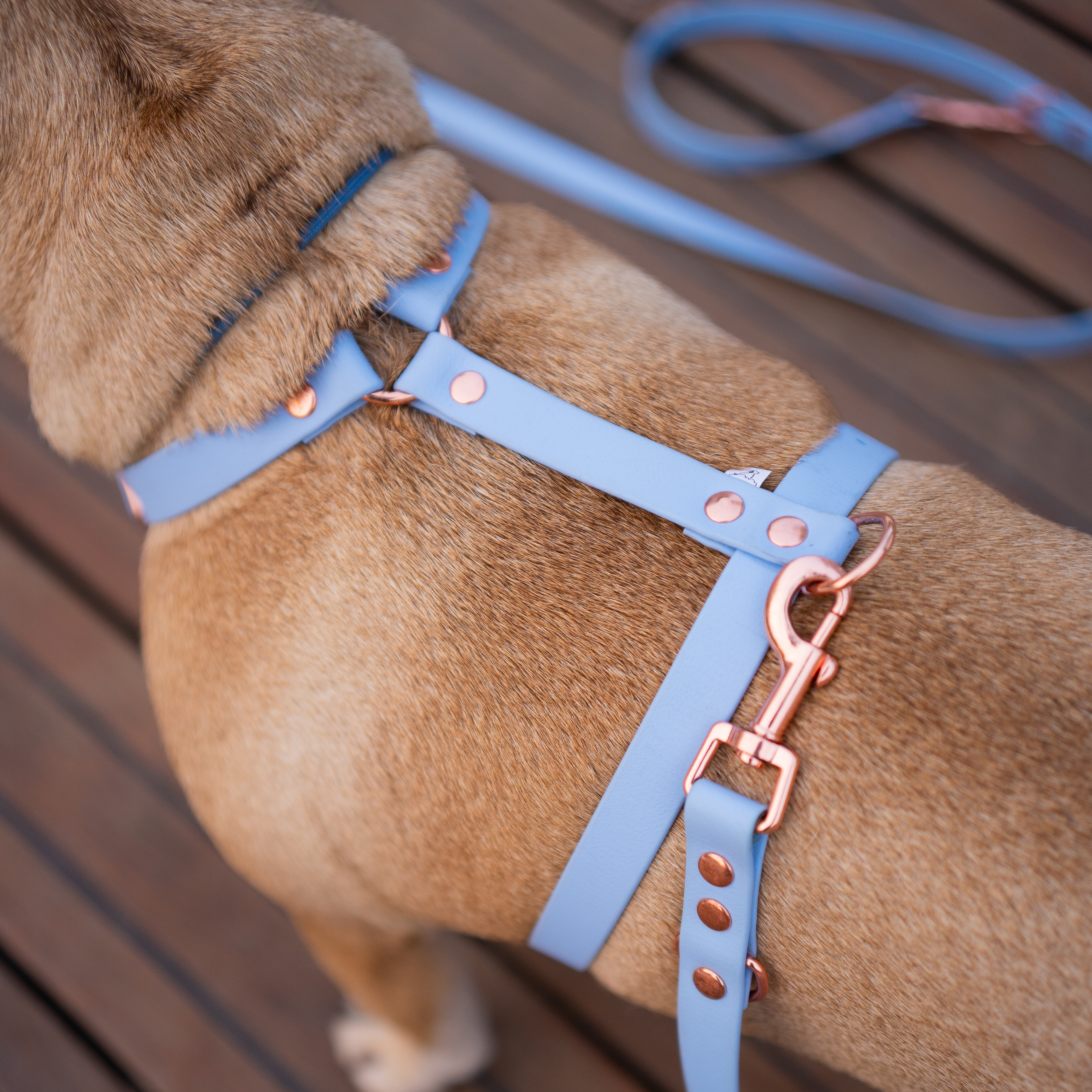 Nie bylibyśmy sobą, jeśli nie byłoby okuć w kolorze różowego złota! Wyjątkowa klamra na sprzączkę lub zatrzaskowa w odcieniu goldrose wraz z resztą eleganckich okuć dodadzą Wam elegancji i stylu podczas przechadzki po mieście, lub wypadu nad jezioro. Szelki tworzą idealny zestaw wraz ze smyczą przepinaną!